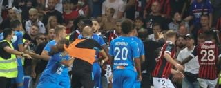 Nice skipper dante attempted to calm angry supporters. Nice vs marseille chaos as dimitri payet gets hit by bottle from fans sparking mass brawl breaking: The south stand of nice's allianz riviera, where police said the trouble was. In the melee, marseille's alvaro gonzalez and matteo guendouzi ran towards the end of the ground to face down the fans. A ligue 1 match between nice and marseille will be under review by france's soccer governing body after the match was abandoned amid chaos between players and fans.